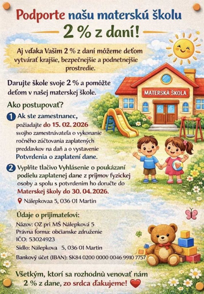 Spoločne pre krajšiu škôlku: venujte 2% z daní